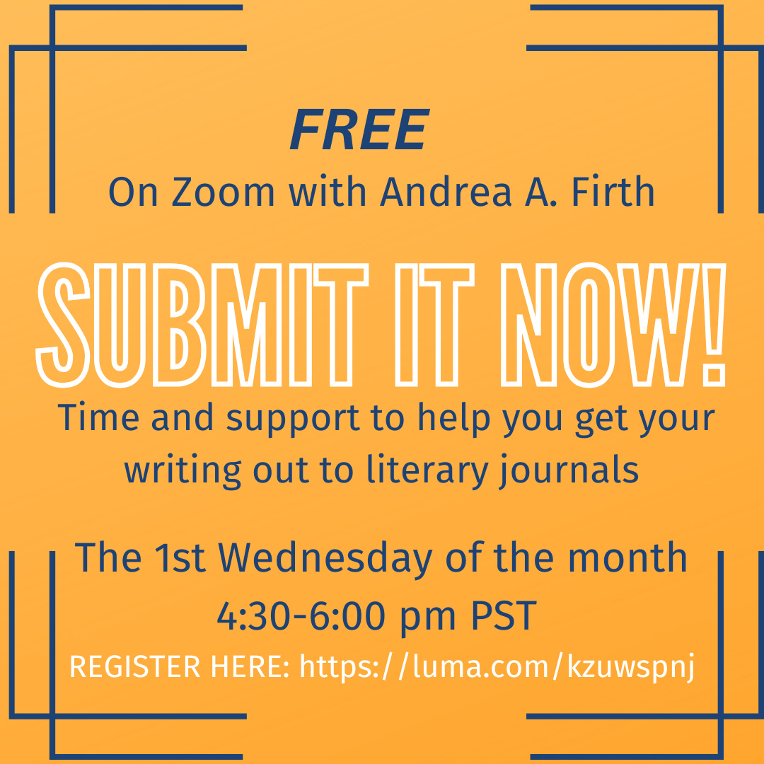 Join me on Zoom this Wednesday, February 4th for Submit It Now! Time and support to submit to lit mags—and get your questions answered. Ask Me Anything. Free! RSVP here for the link.